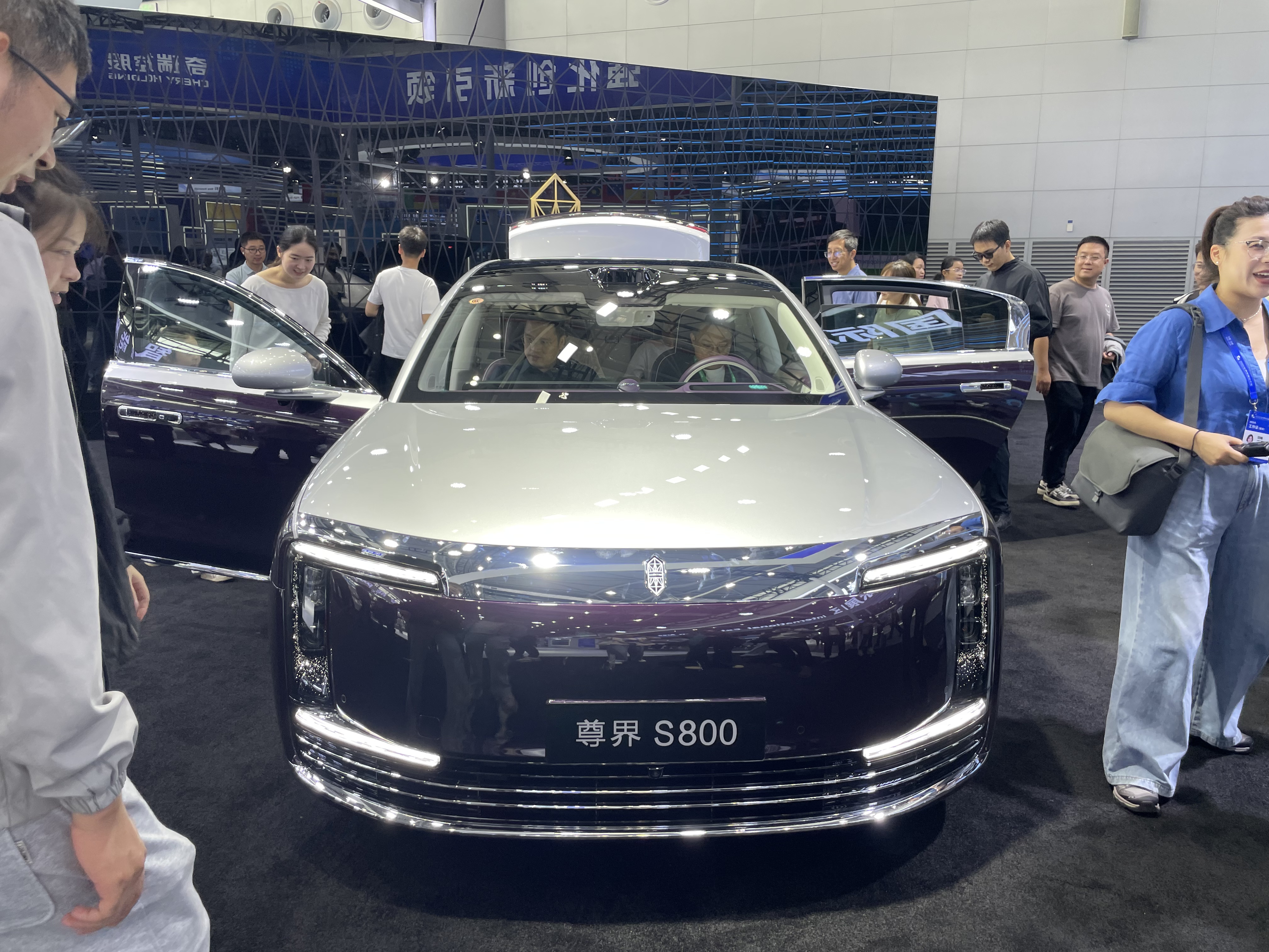 尊界工作人員一邊引導(dǎo)市民體驗,一邊介紹車型亮點。除了尊界S800,奇瑞汽車的首款C級科技豪華新旗艦風(fēng)云A9L、蔚來基于NT3.0平臺打造的ET9、比亞迪搭載“易四方”四電機系統(tǒng)的仰望U7等十余種車型同步亮相,引得市民駐足圍觀、討論不斷。